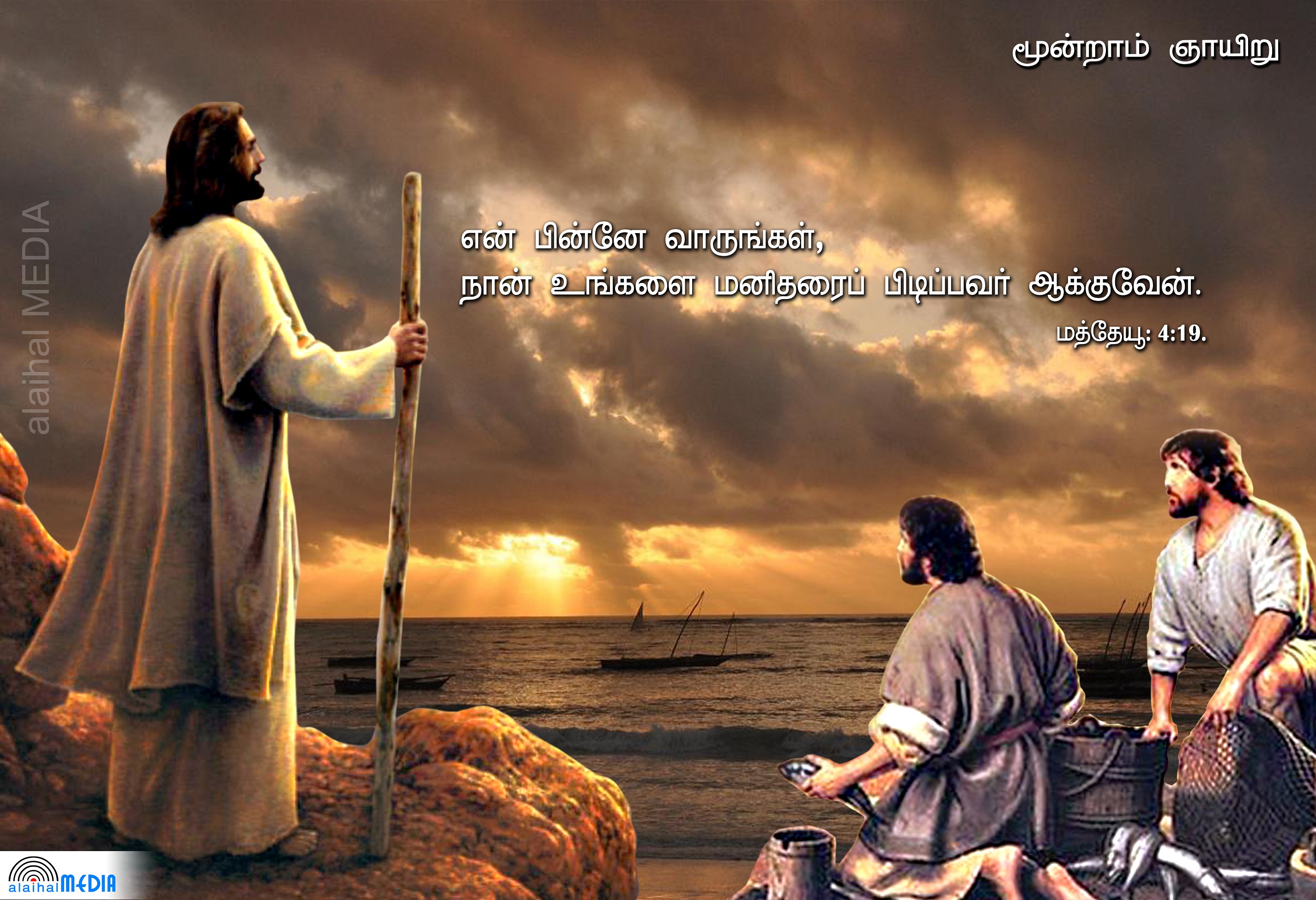 இயேசு "என் பின்னே வாருங்கள். நான் உங்களை மனிதரைப் பிடிப்பவர் ஆக்குவேன்'