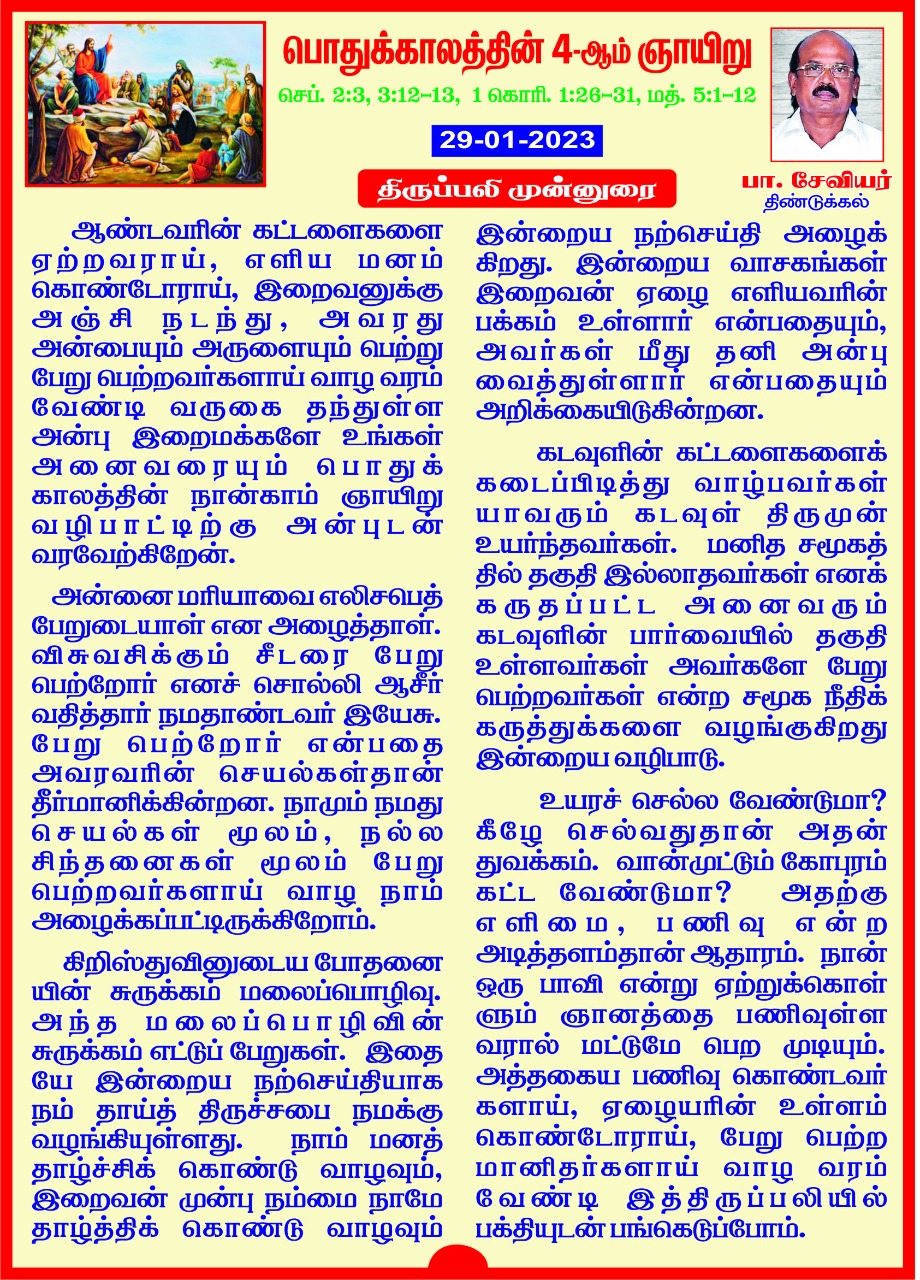 முன் வருகிறது. இயேசுவின் மலைப்பொழிவை வாழ்வாக்கிட அருள்